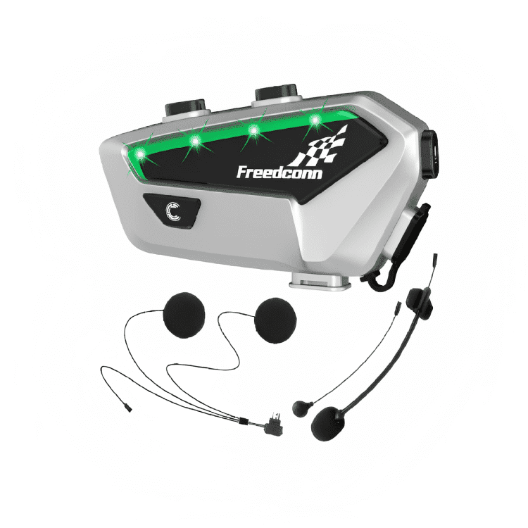 El FreedConn FX es un intercomunicador para moto que puede ser usado en distintos tipos de cascos. Este modelo permite obtener un sonido de alta resolución, y teniendo capacidad para comunicarse entre 10 conductores con un alcance máximo de 1.5 km. Entre ellos podrá comunicarse gracias a su micrófono con auriculares. Está disponible en negro y en color plata.