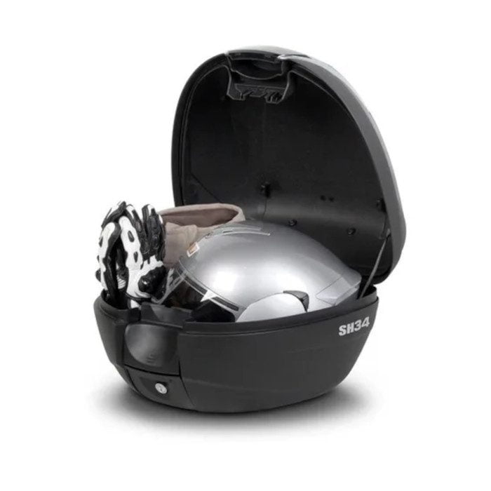 El sofisticado maletero SH34 de moto compacto y práctico, compuesto de polipropileno reforzado de alta calidad y con capacidad para guantes y un casco modular.